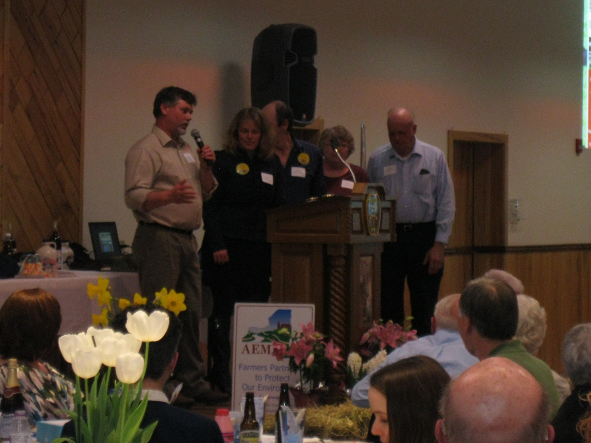 The farm was chosen by the Cattaraugus County Soil & Water Conservation District for their outstanding efforts to implement a wide variety of best management practices to improve water quality and enhance soil productivity. Practices include a bulk silo runoff management project, milk house waste storage tank and pump system, fencing livestock away from streams, and planting cover crops to reduce erosion and improve soil conditions. They are actively applying a comprehensive nutrient management plan to properly manage and utilize animal wastes and nutrients. They are also active in the Cattaraugus County Farm Bureau.